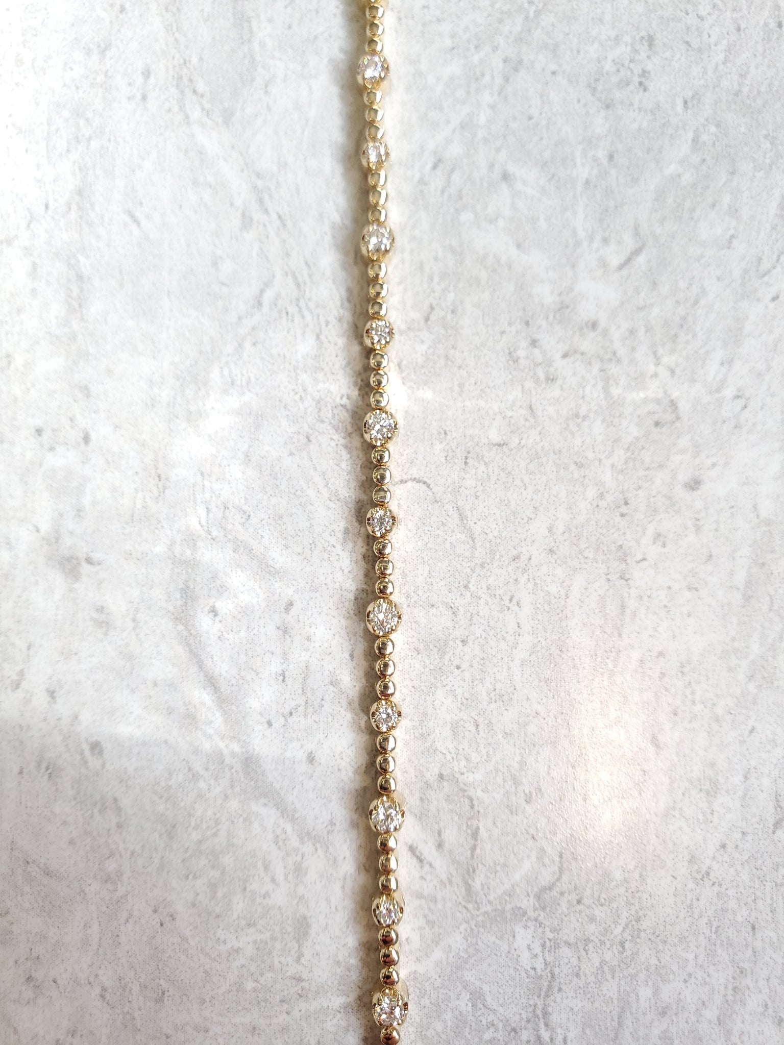 14k Yellow Gold .61ctw Prong-Set Diamond Station Bracelet. 7" Length