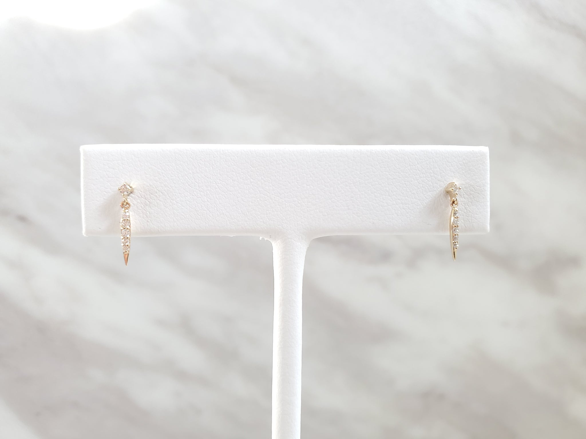 14k Yellow or White Gold .08ctw Diamond Spike Dangle Earrings 1" Drop