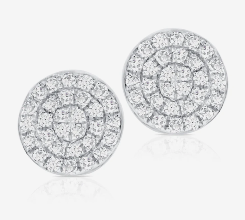 14k Yellow or White Gold .18ctw Pave Diamond Disc Stud Earrings