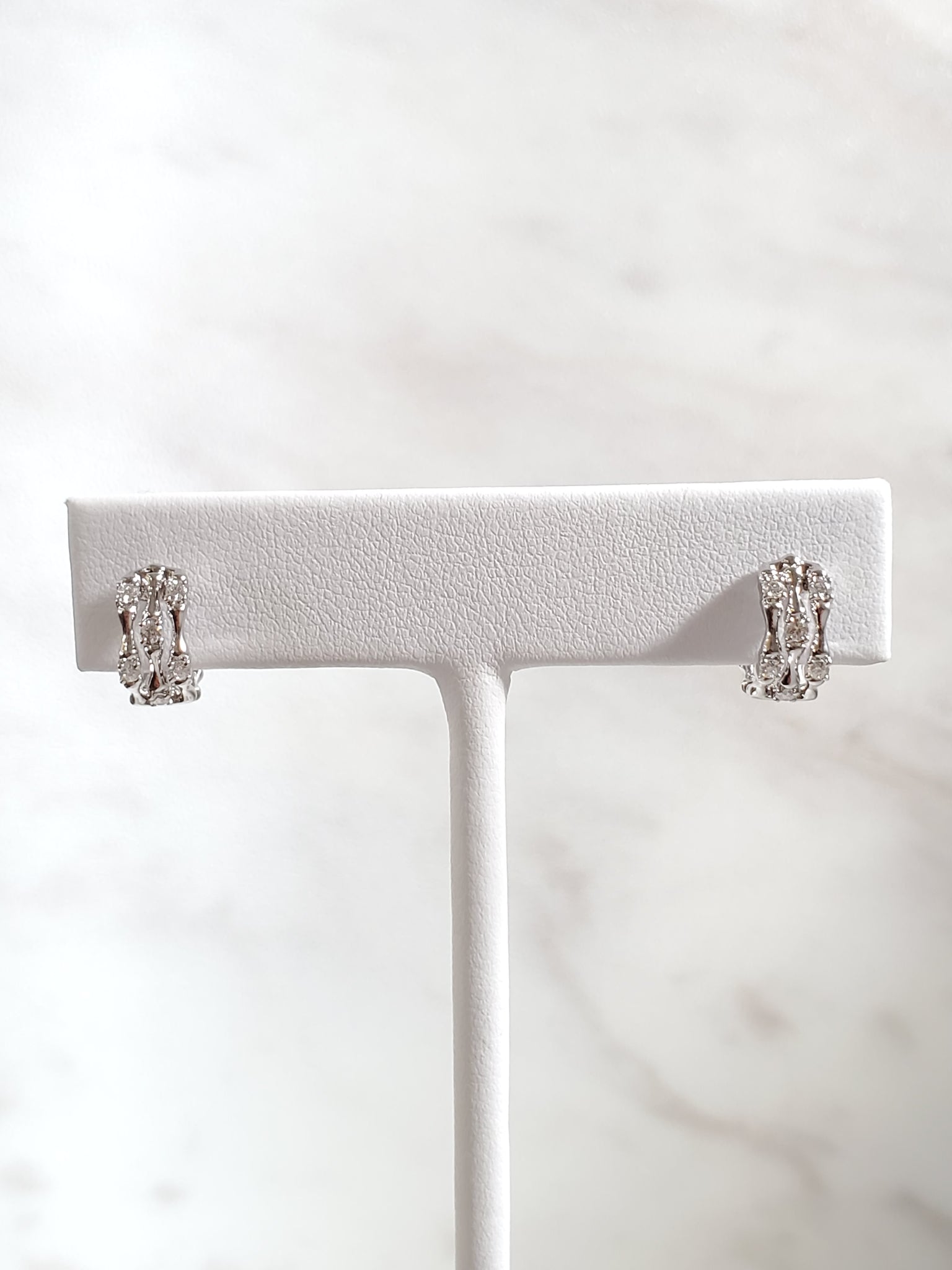 14k Yellow or White Gold .22ctw Diamond Bamboo Huggie Hoop Earrings