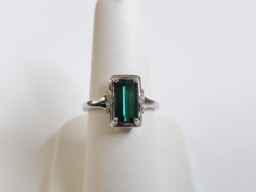 14k White Gold Vertically Set Rectangle Green Tourmaline & Diamond Accent Ring (I9833)