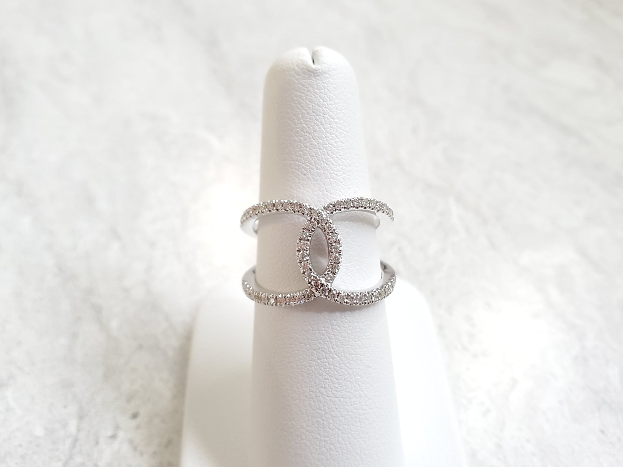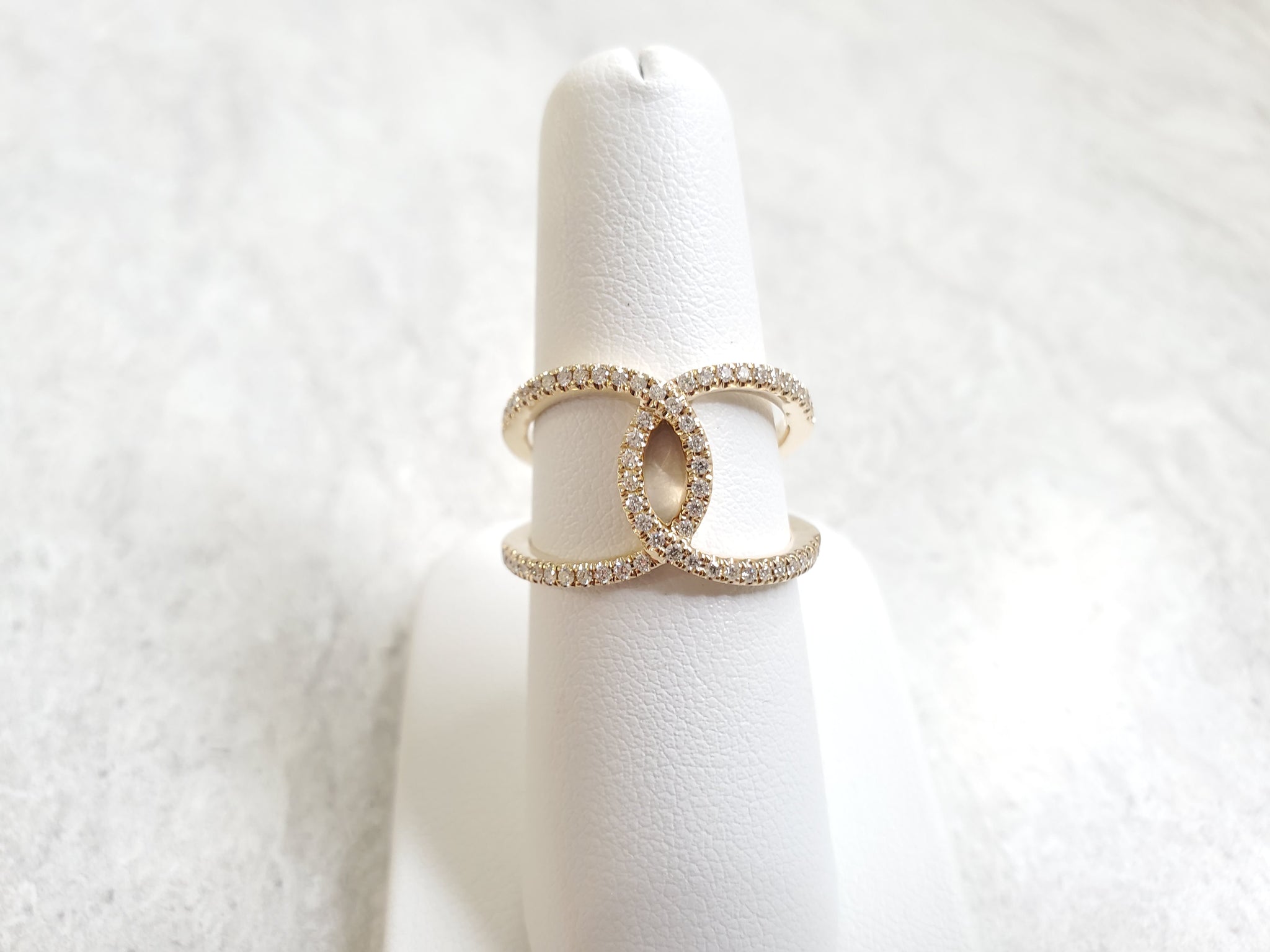 14k Yellow or White Gold Interlocking Wide Negative Space Diamond Ring. Size 7