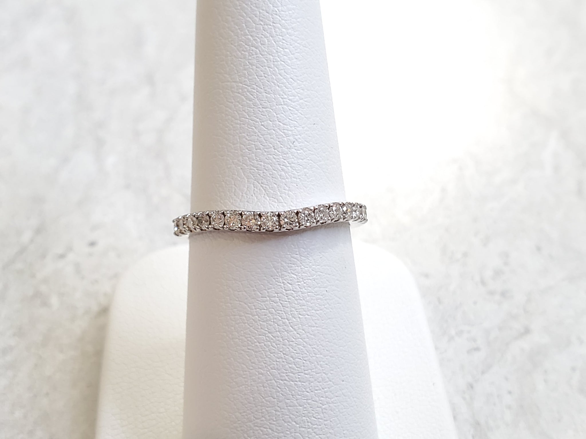 14k White Gold Curved .32ctw Diamond Band. Size 6.75