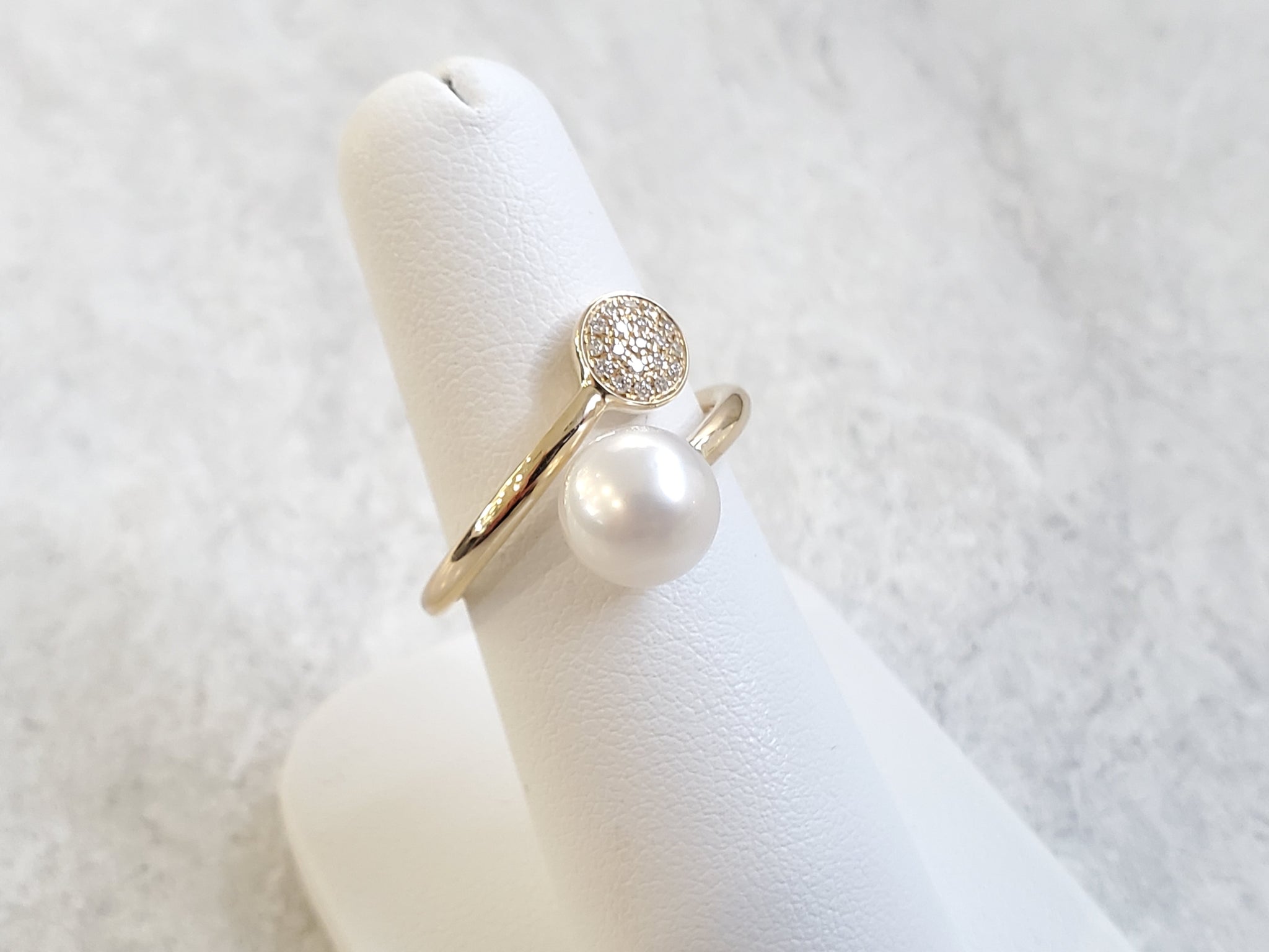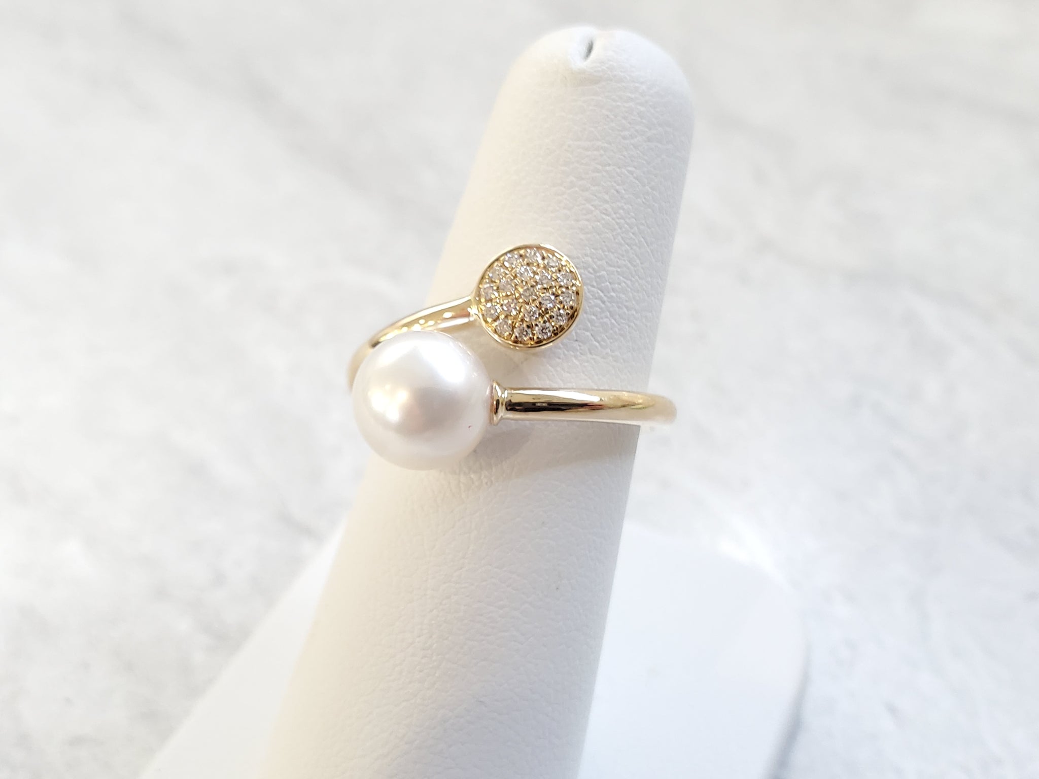 14k White or Yellow Gold 8-9mm South Sea Pearl & .12ctw Pave Diamond Wraparound Ring. Size 6