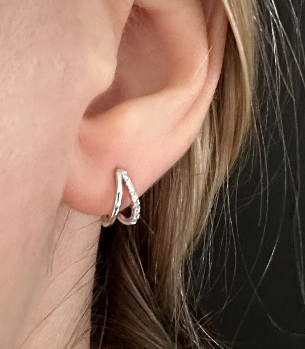 14k Yellow or White Gold .12ctw Diamond Split Hoop Curved Huggie Earrings