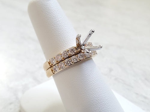 14k Yellow Gold 1.15ctw Diamond Wedding Band & Semi-Mounting Engagement Ring Set