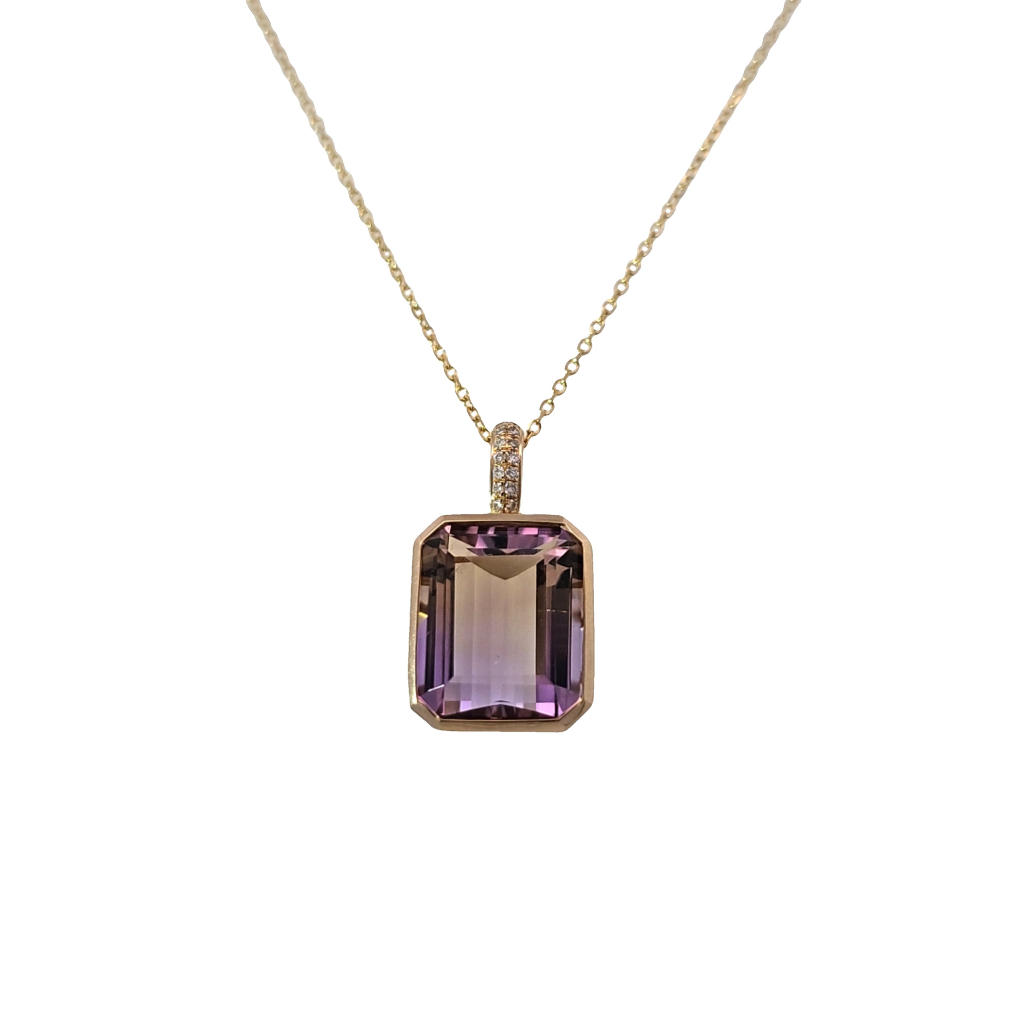 14k Yellow Gold Ametrine & Diamond Pendant Necklace (I9922)