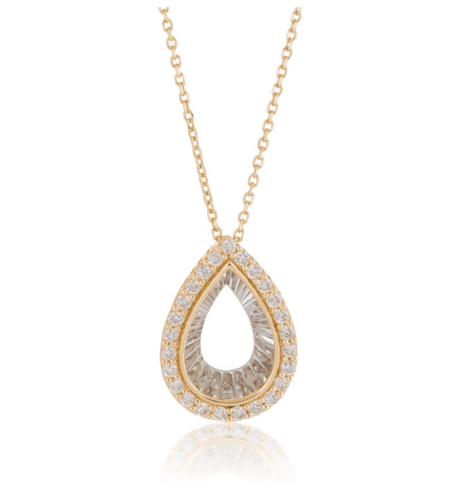 14k Two Tone Gold Diamond Reflection Pear-Shaped Necklace (I9650)