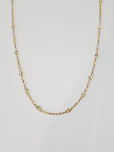 18k Yellow Gold Bezel Set Diamond Station Necklace (I9764)