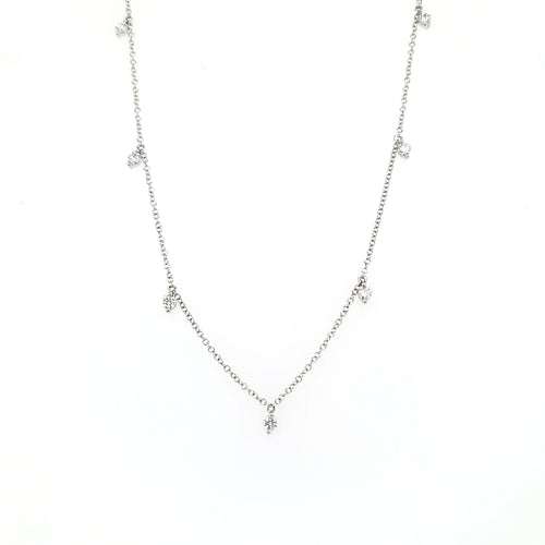 14k White Gold Prong Set Diamond Dangle Station Necklace (I7432)