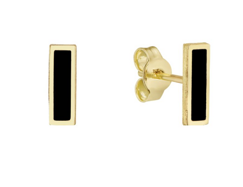 14k Yellow Gold Rectangle Onyx Stud Earrings (I7775)