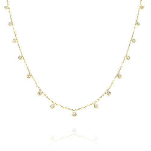 14k Yellow Gold .15ctw Diamond Drop Station Necklace (I8269)