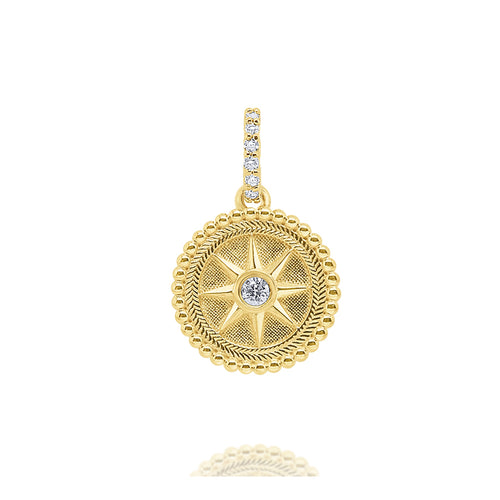 14k Yellow Gold Diamond Center Compass Pendant (I8228)