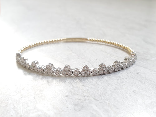 14k Two Tone Gold Beaded Bezel Diamond Milgrain Pods Flex Cuff Bracelet (I9677)