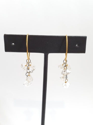 AVF Limited Edition Oxidized Sterling Silver with Gold Filled Accents Herkimer Diamond Cluster Dangle Earrings (SI6926)