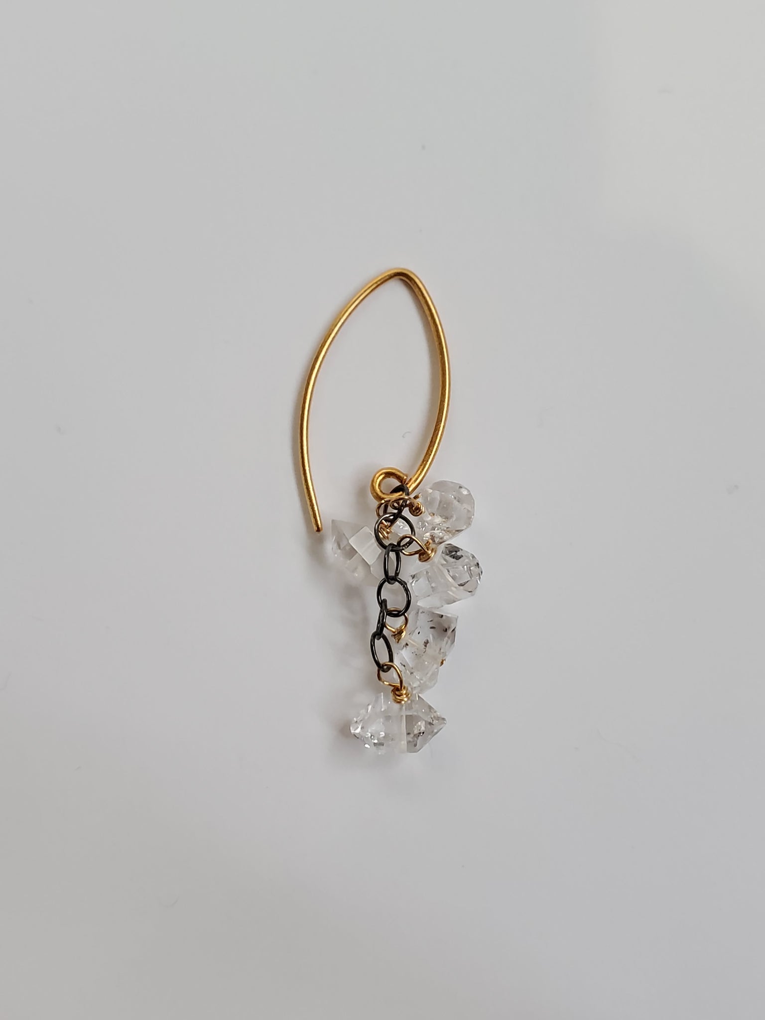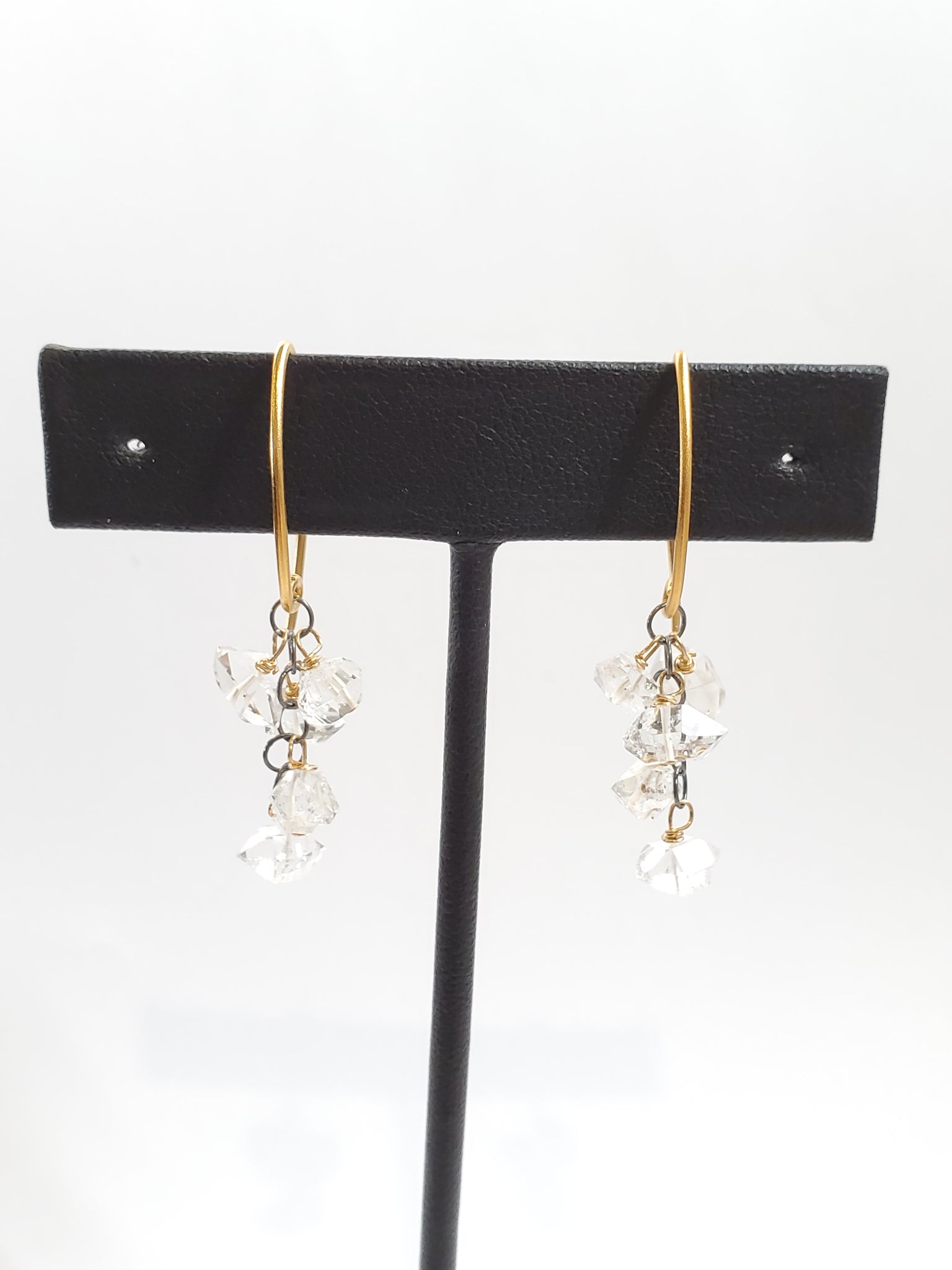 AVF Limited Edition Oxidized Sterling Silver with Gold Filled Accents Herkimer Diamond Cluster Dangle Earrings. 1.75" Drop