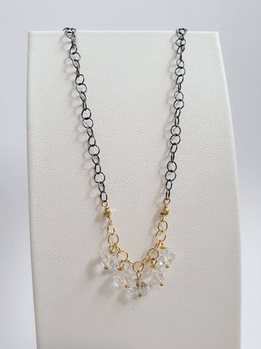 AVF Limited Edition Oxidized Sterling Silver with Gold Filled Accents Herkimer Diamond 5 Stone Dangle Necklace (SI6925)