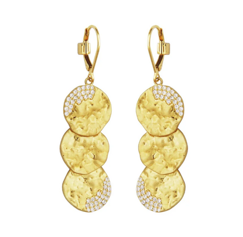 ELLE Gold Plated Sterling Silver Hammered CZ Disc Dangle Earrings (SI8164)