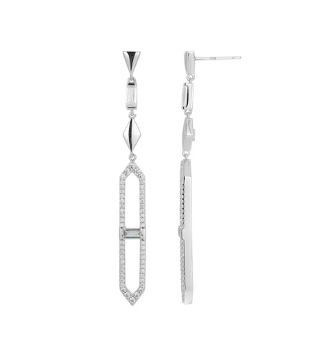 ELLE Rhodium Plated Sterling Silver CZ Art Deco Dangle Earrings (SI8412)