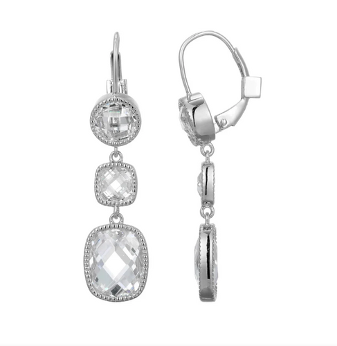 ELLE Rhodium Plated Sterling Silver Multi-Shape Faceted CZ Dangle Earrings (SI8157)