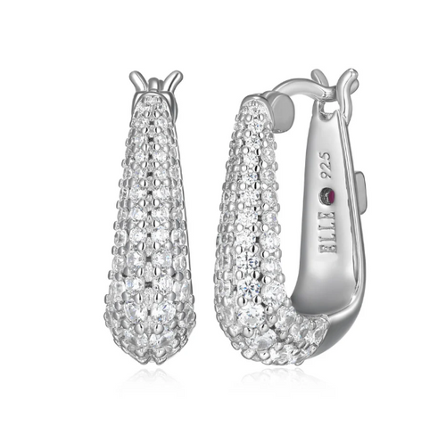 ELLE Rhodium Plated Sterling Silver Pave CZ U-Shaped Hoop Earrings (SI8410)
