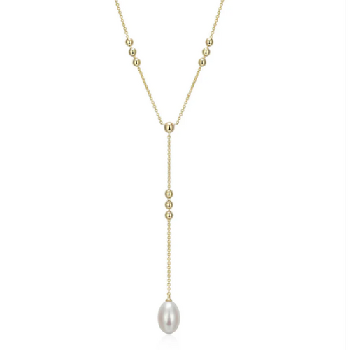 ELLE Gold Plated Sterling Silver Beaded Chain & Pearl Drop Y Necklace (SI8178)