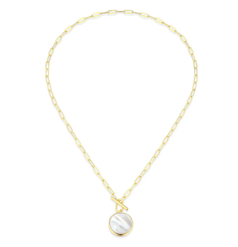 ELLE Gold Plated or Sterling Silver Mother of Pearl Disc Toggle Necklace (SI8335)