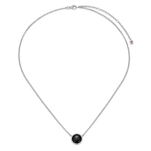 ELLE Rhodium Plated Sterling Silver Black Agate Button Rolo Chain Necklace (SI8434)