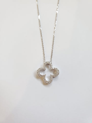 14k White Gold Diamond Clover Pendant (I9841)