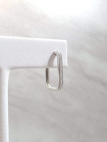 14k Gold Diamond Rectangle Hoop Earrings