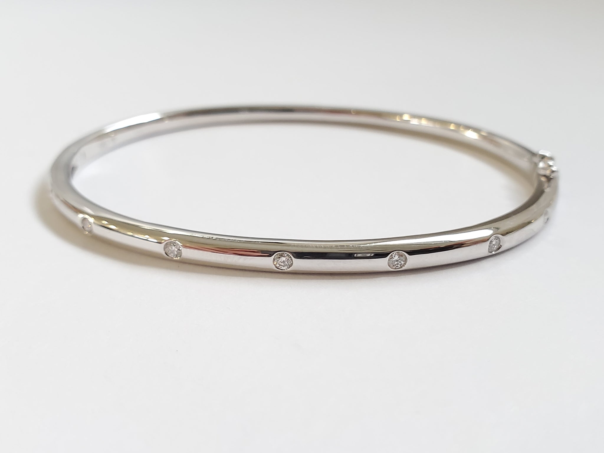 14k Yellow or White Gold Flush Set .18ctw Diamond Bangle Bracelet