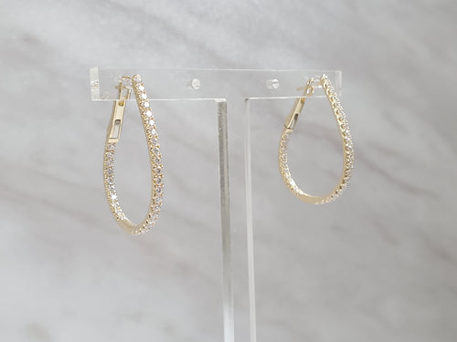 14k Yellow Gold Teardrop Shaped Inside Out Diamond Hoop Earrings (I9855)