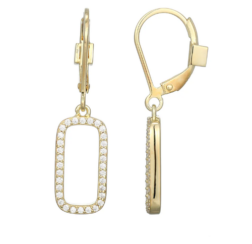 ELLE Gold Plated Sterling Silver Rectangle CZ Negative Space Dangle Earrings (SI8183)