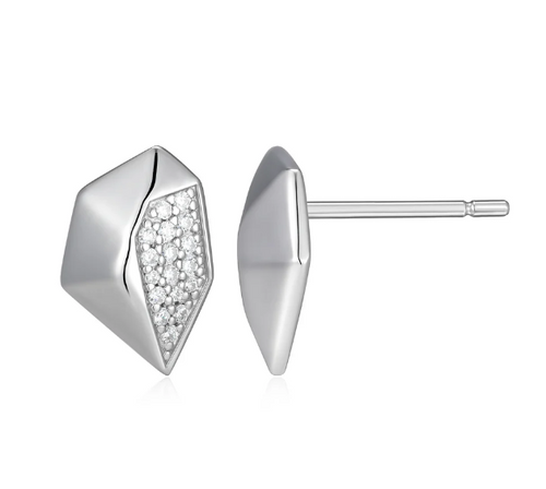 ELLE Rhodium Plated Sterling Silver Prism CZ Geometric Stud Earrings (SI8165)