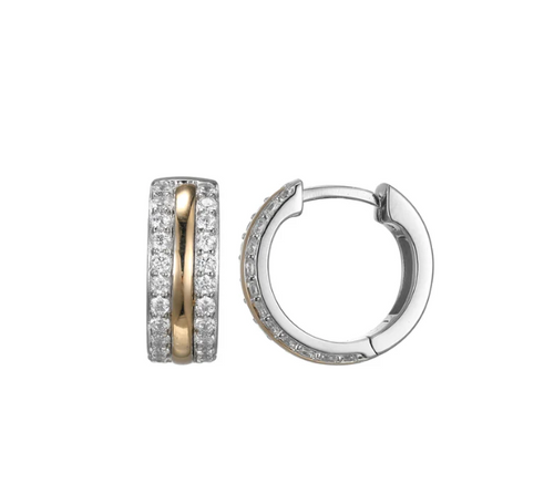 Rhodium & Gold Plated Sterling Silver CZ Hoop Earrings (SI8416)