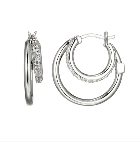 ELLE Rhodium Plated Sterling Silver CZ Double Hoop Earrings (SI8158)