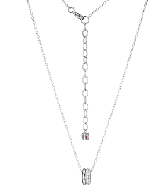 ELLE Rhodium Plated Sterling Silver High Polish & CZ Rondelle Necklace. 16" - 18" Adjustable Length