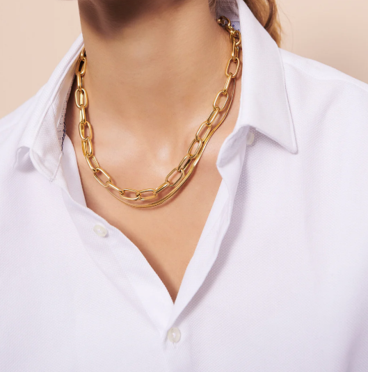 18k Yellow Gold Plated Sterling Silver Capri Chain Necklace. Up to 17.75" Adjustable Length