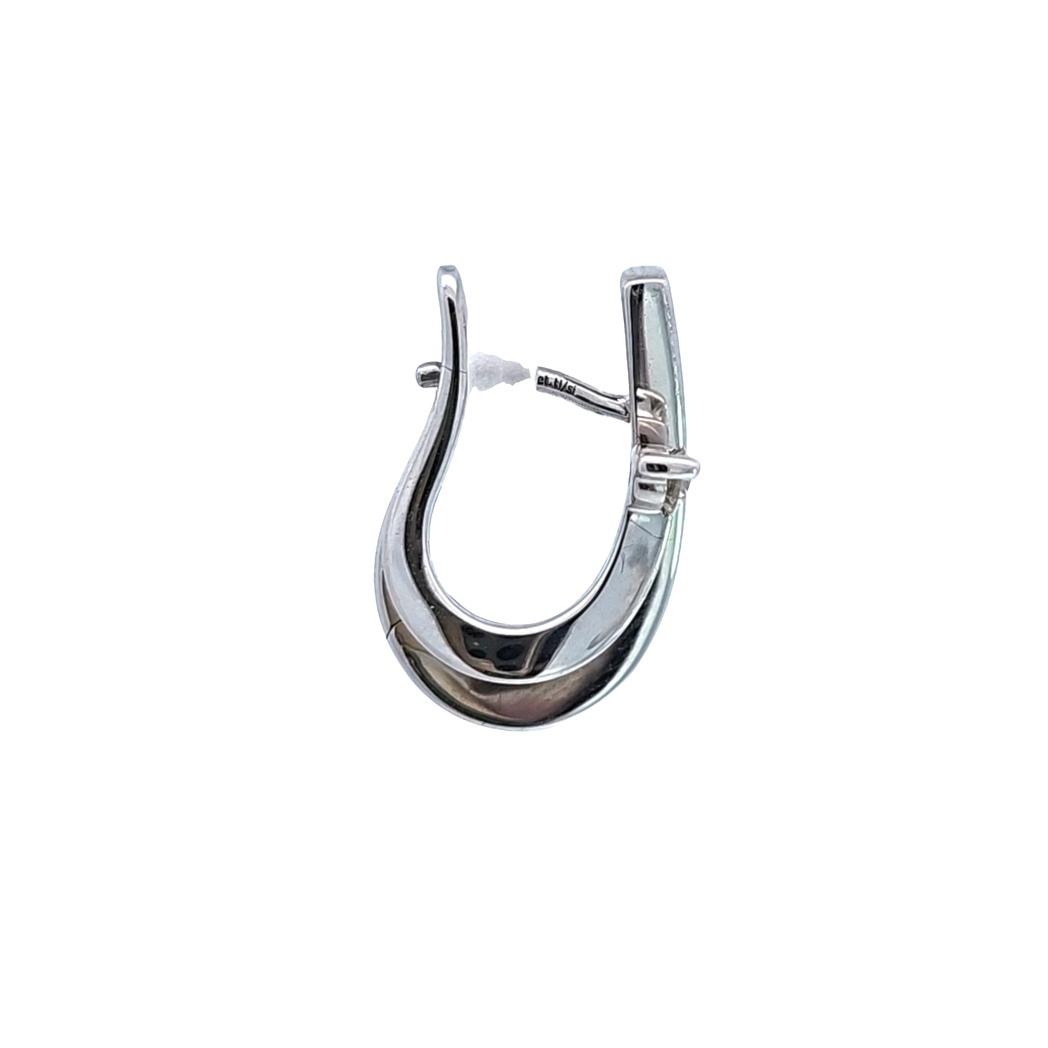 14k White Gold Modern Double Hoop & .12ctw Diamond Accent Earrings. Brushed & Bright Finish.