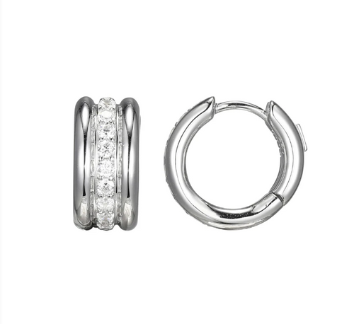 ELLE Rhodium Plated Sterling Silver CZ Huggie Hoop Earrings (SI8169)