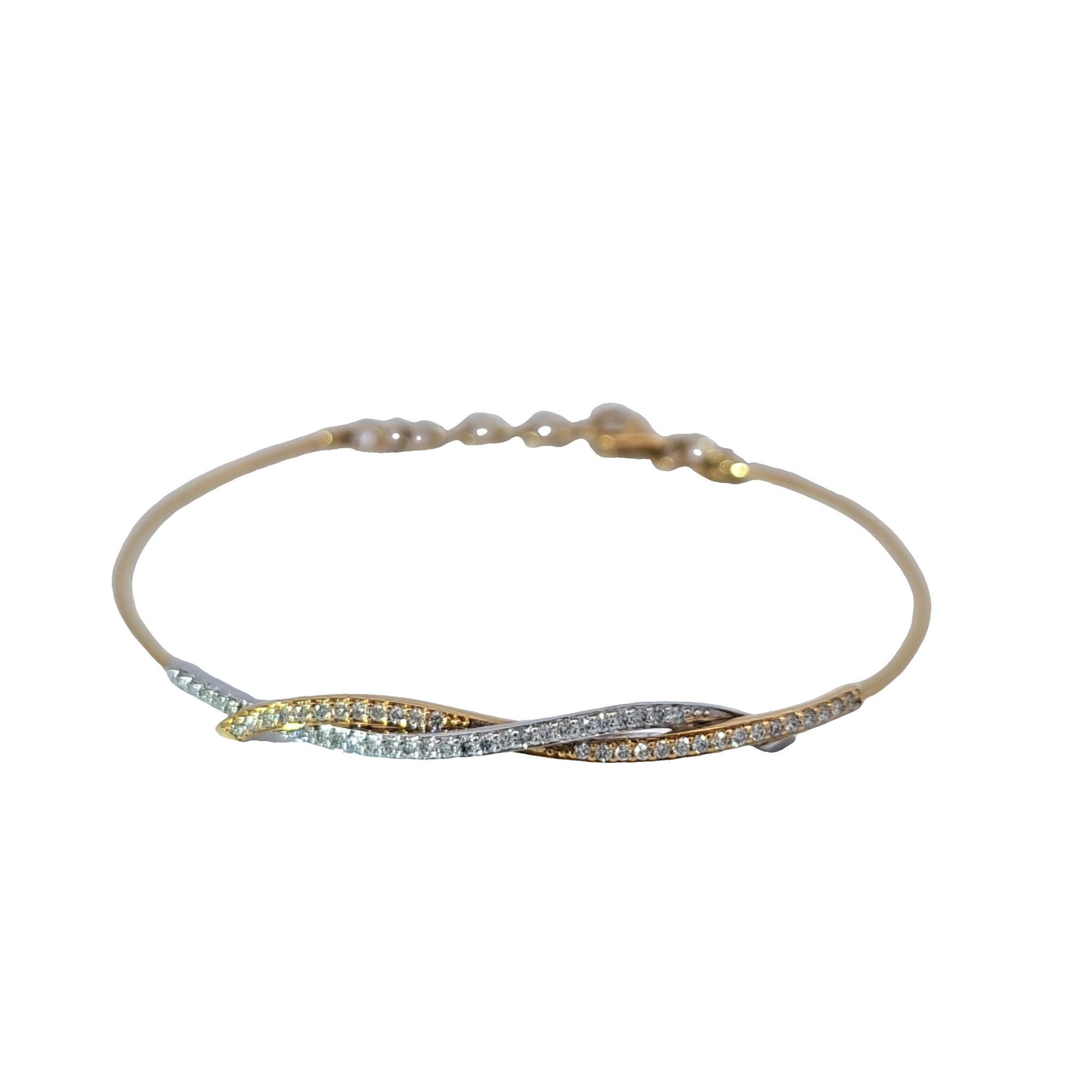 CLEARANCE - 14k Yellow & White Gold Diamond Crossover Chain Bracelet (I7849)