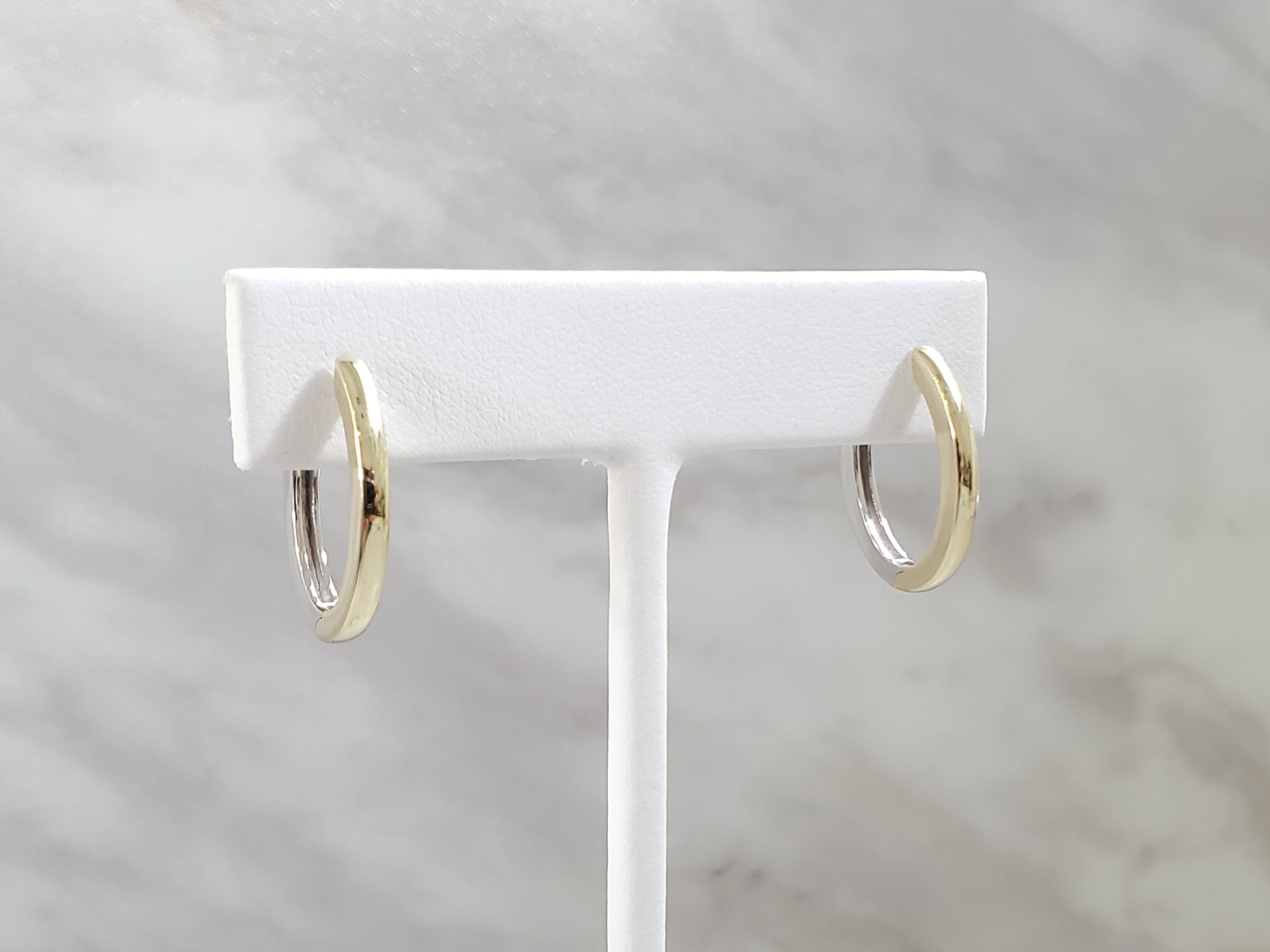 14k Yellow & White Gold Hoop Earrings. .75" Drop.