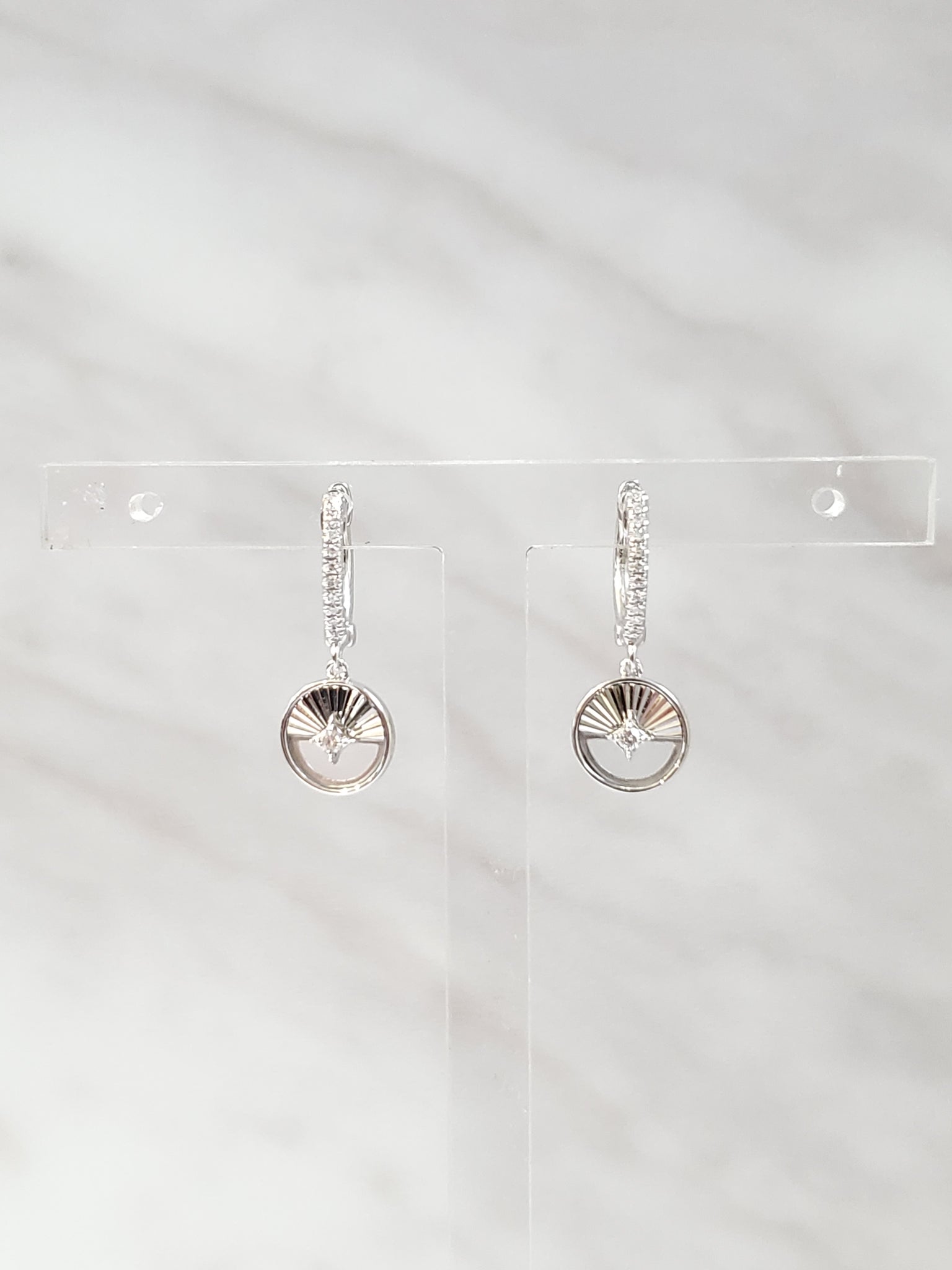 14k Yellow or White Gold Half-Engraved Circle & .11ctw Diamond Star Huggie Hoop Earrings