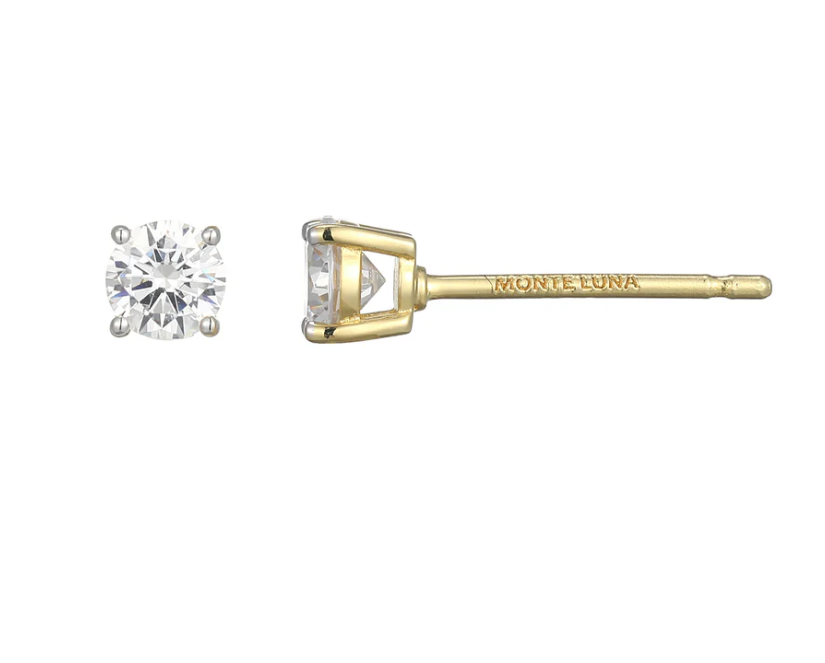 Monte Luna Gold Plated Sterling Silver Lab-Created Diamond Solitaire Stud Earrings