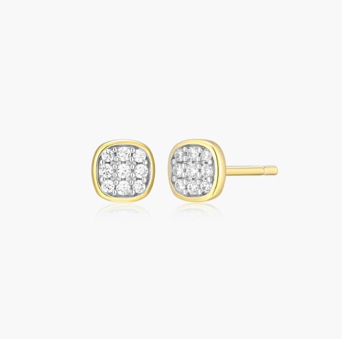 Sterling Silver Rhodium or Gold Plated Lab-Created .10ctw Diamond Cushion Stud Earrings