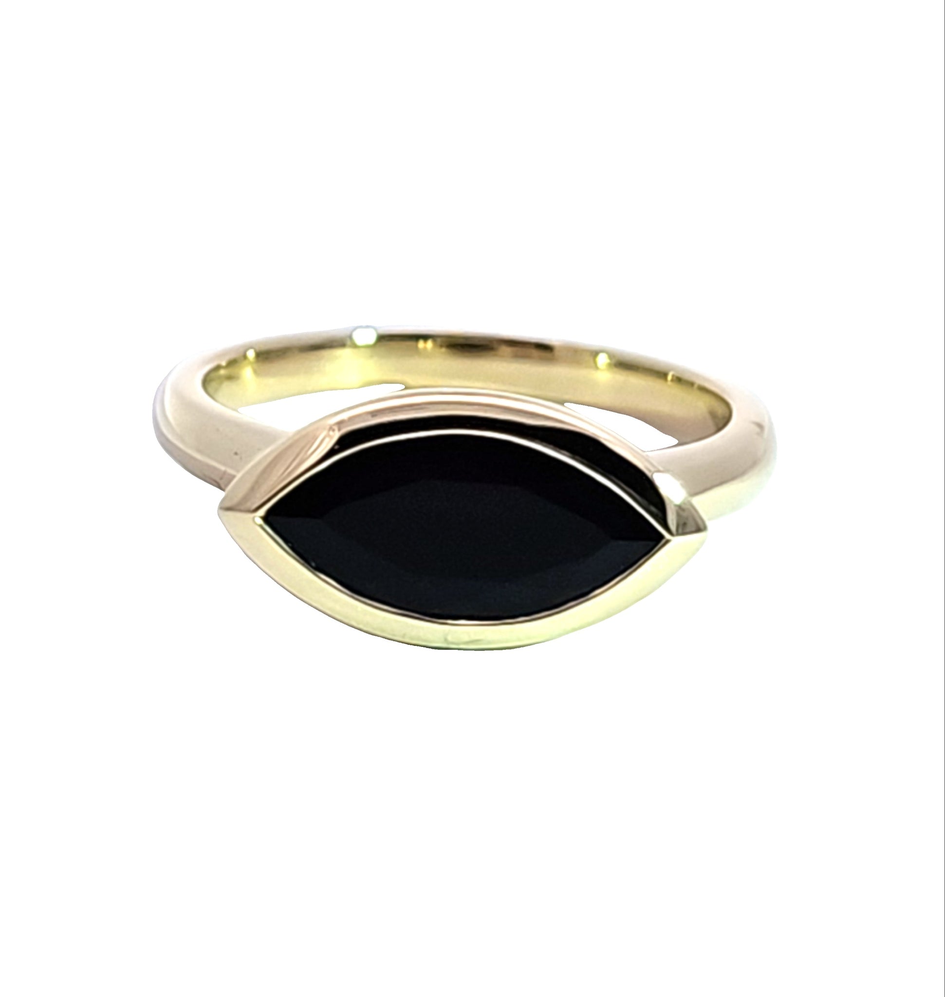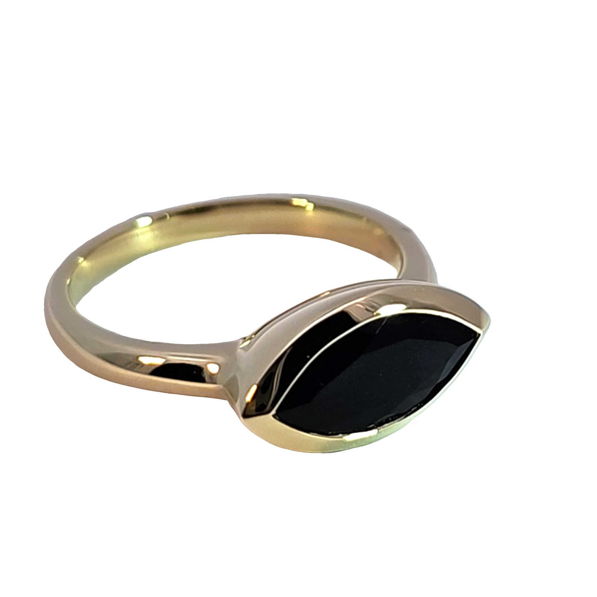 14k Yellow Gold Faceted Onyx Marquise Ring. Size 7-