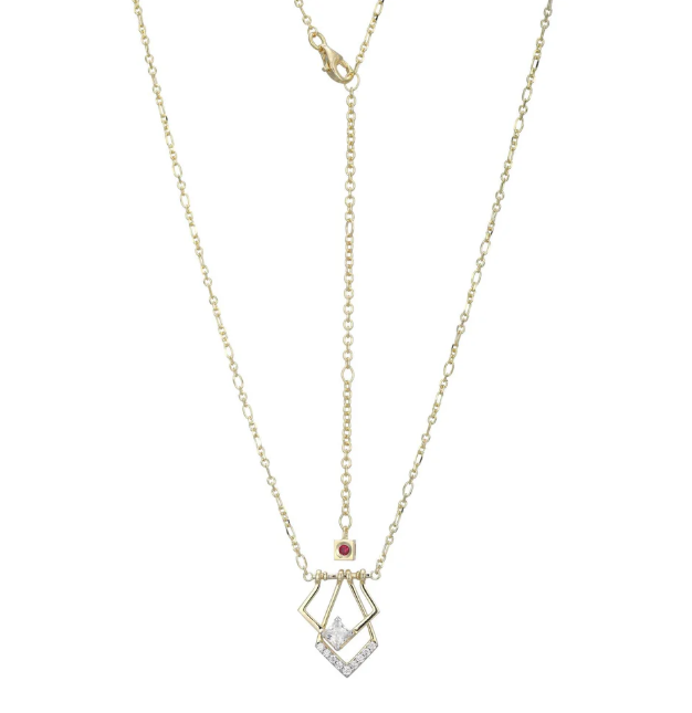 ELLE Gold Plated Sterling Silver CZ Art Deco Geometric Necklace. 16", 17", 18" & 19" Adjustable Length 1.25" Drop