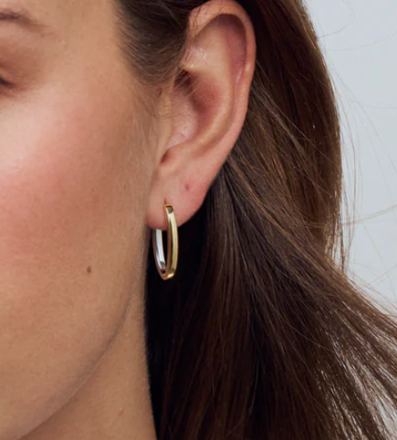Two Tone Rhodium Plated Sterling Silver Oblong Hoop Earrings