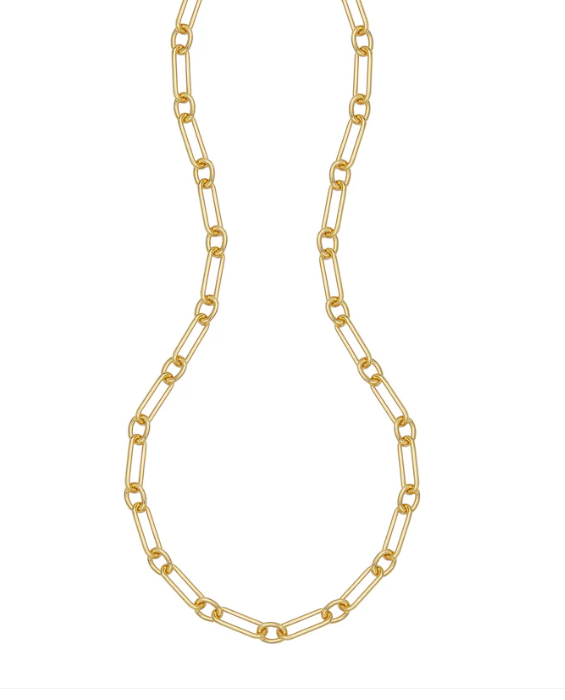 Gold Plated Sterling Silver Elongated & Round Link Chain Necklace.