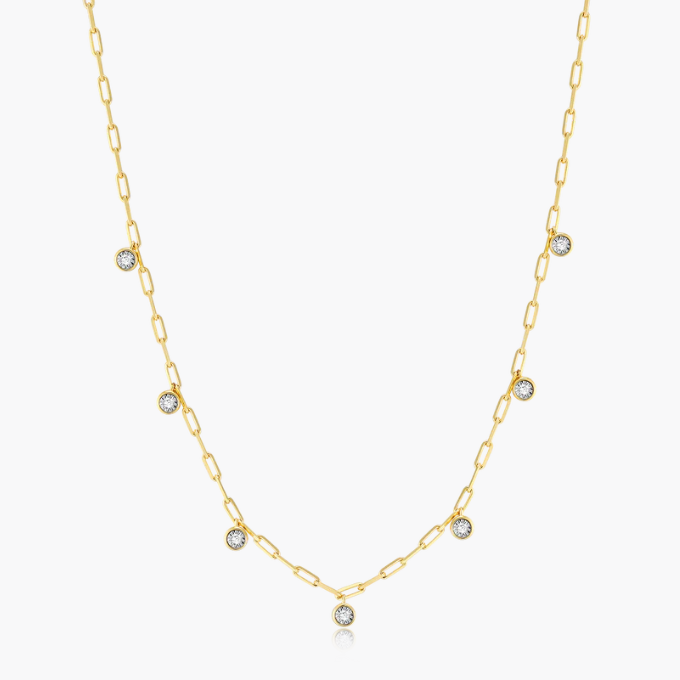 Sterling Silver Rhodium or Gold Plated Lab-Created Bezel Set .16ctw Diamond Dangle Paperclip Station Necklace. 16", 17" & 18" Adjustable Length
